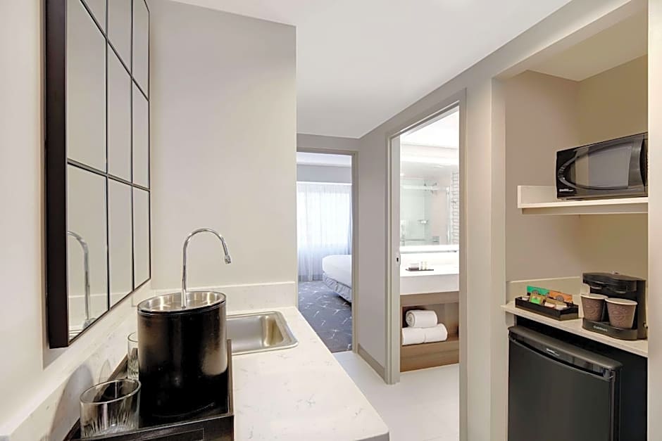 Featuring upgraded premium WiFi, a Keurig coffee maker and complimentary snacks and drinks, this suite includes a separate seating area with plush lounge seating.